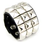 | スタッズ ブレスレット3連 本革ブラック黒 鋲 ブレス/メール便可 ・素材:本革/メッキ合金<br>・カラー:ブラックレザー/シルバーメタル<br>・サイズ:【幅】5cm 【調節可能サイズ】17cm 19cm(スナップ式二段階)<br&g... |